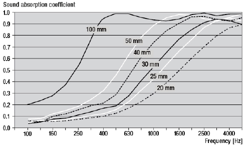 Diagrama 1. Espesores de paneles vs coeficiente de absorción (no corresponde a nuestros paneles)